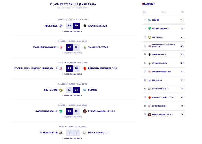 Prénationale - Poule B - J12 - Les résultats et le classement