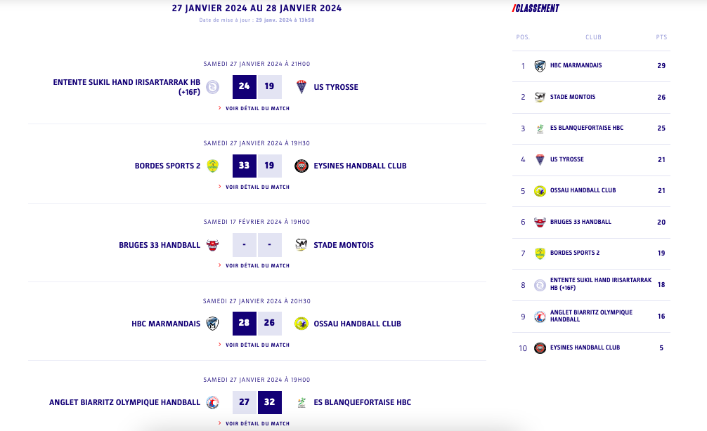 Excellence Régionale - Poule B - J11 - Les résultats et classement