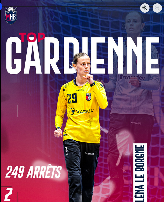 Léna Le Borgne, la gardienne du Mérignac HB, se classe 2ème de LFH avec 249 arrêts cette saison. Elle s'est montrée solide sur sa ligne et décisive dans les moments clefs.