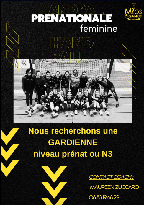 L' équipe réserve de l'US Mios Biganos qui s'est maintenue en Prénationale est à la recherche d’une gardienne de but pour renforcer son effectif pour la saison à venir !