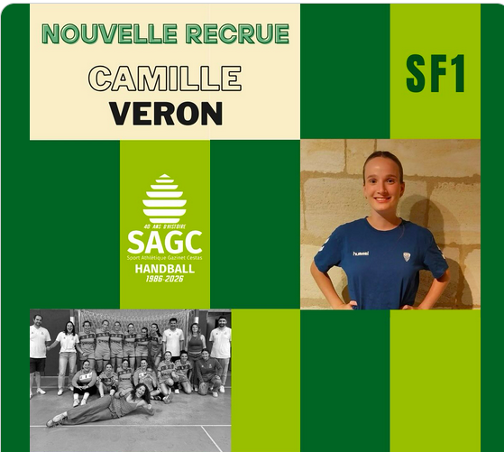 Les mots de Camille Veron : « J’ai hâte de pouvoir jouer et partager cette saison avec l’équipe sous les couleurs du SAGC. »