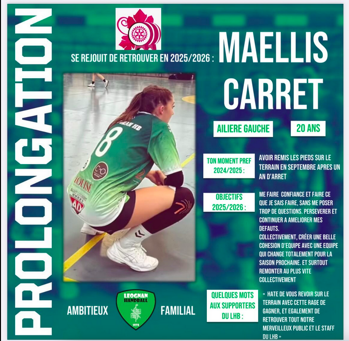 Maellis Carret, arrière gauche de 20 ans, prolonge l’aventure au Léognan Handball et se fait fort d’arriver à construire avec ce tout nouveau groupe une "cohésion d’équipe"