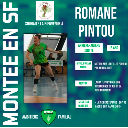 Après une dernière saison satisfaisante et pleine de promesses en Moins de 18, Romane Pintou jouera dès septembre avec l'équipe première de Léognan Handball