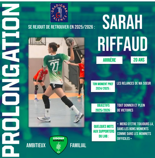 L'arrière de 20 ans Sarah Riffaud a décidé de continuer sous les couleurs du Léognan Handball et se dite prête pour un nouveau défi.