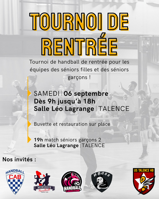 Ce samedi, l'US Talence organise son tournoi sur le parquet de la salle Léo Lagrange. Une journée 100% handball 🔥 👉 Au programme : matchs, convivialité, buvette & restauration sur place. 👉 Et pour finir en beauté : match séniors garçons 2 à 19h !
