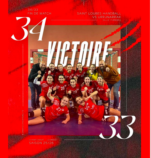 Victoire au bout du suspense pour les Loubésiennes qui s’imposent 34 sur 33 à Urrugne grace à Amicie Delmas qui marque le but victorieux à la sirène.