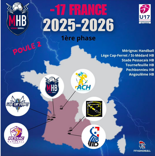 La première phase du championnat de France U17 promet de nombreux derbys entre les formations girondines. Mérignac (3e du championnat en 2024-2025), l'entente Lège/Saint-Médard/Lacanau (4e de la poule 1 de niveau bas lors de la 2e phase) et Pessac (qualifiée pour la première fois) vont s'affronter très régulièrement.