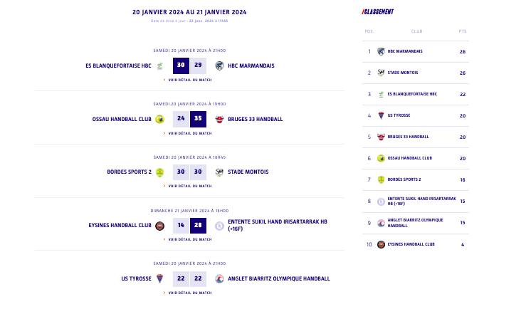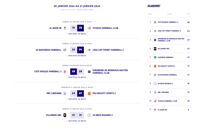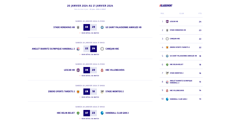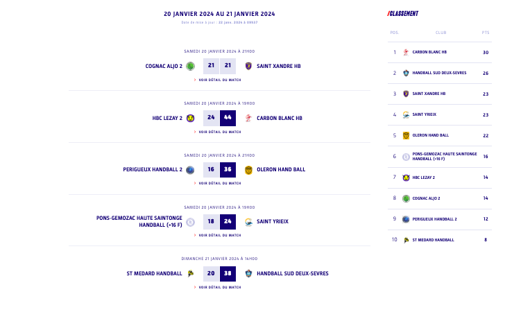 N2 - Poule 2 - J14 - Les résultats et classement