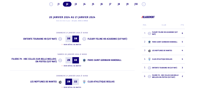 U17 - Phase 2 - Poule 1 - Résultats et classement
