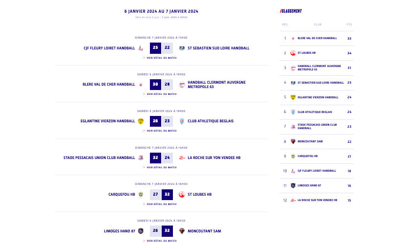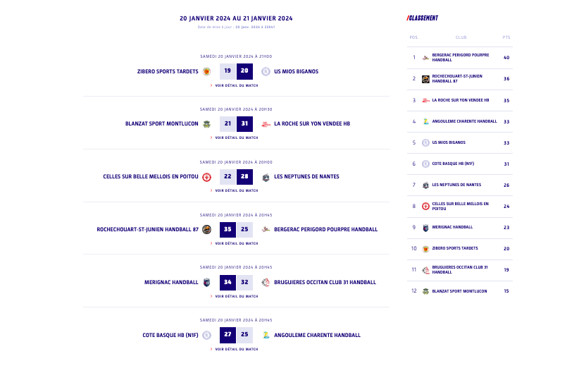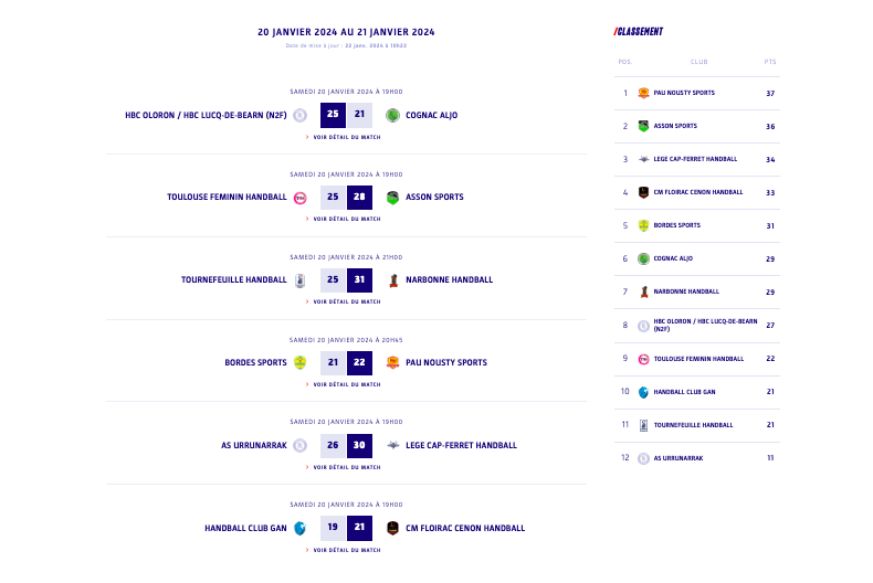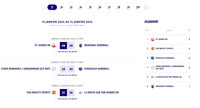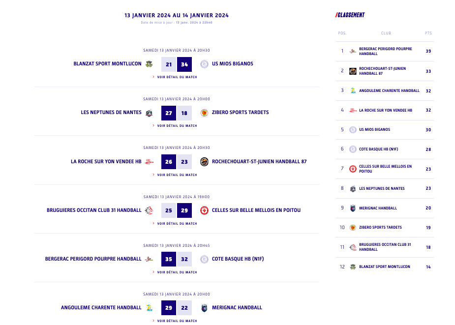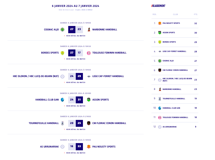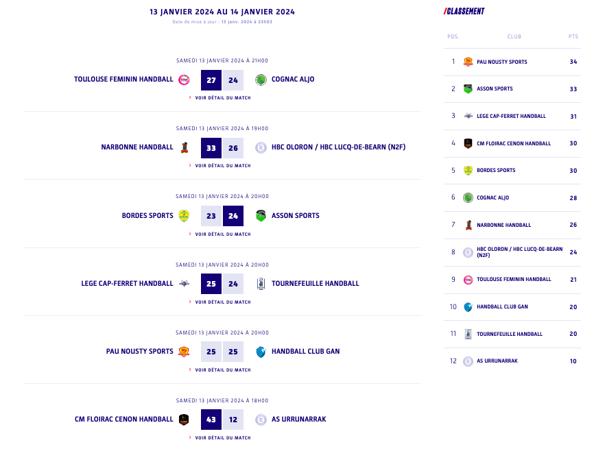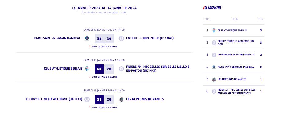 U17 - Phase 2 - Poule 2 - Résultats et classement