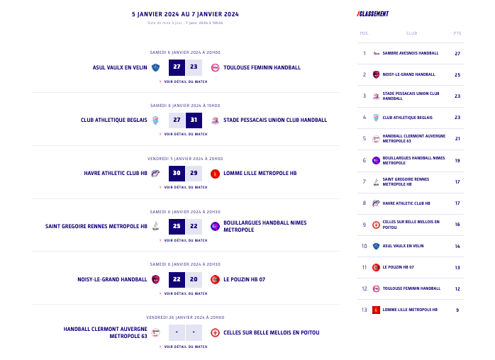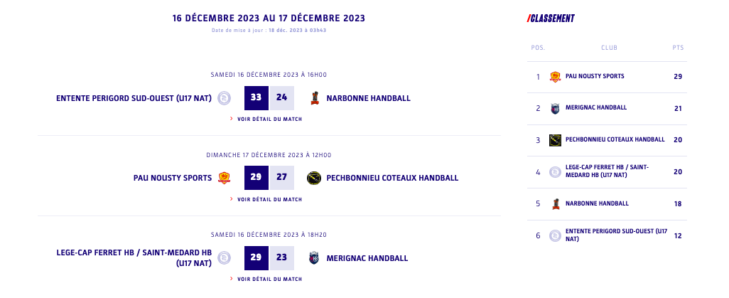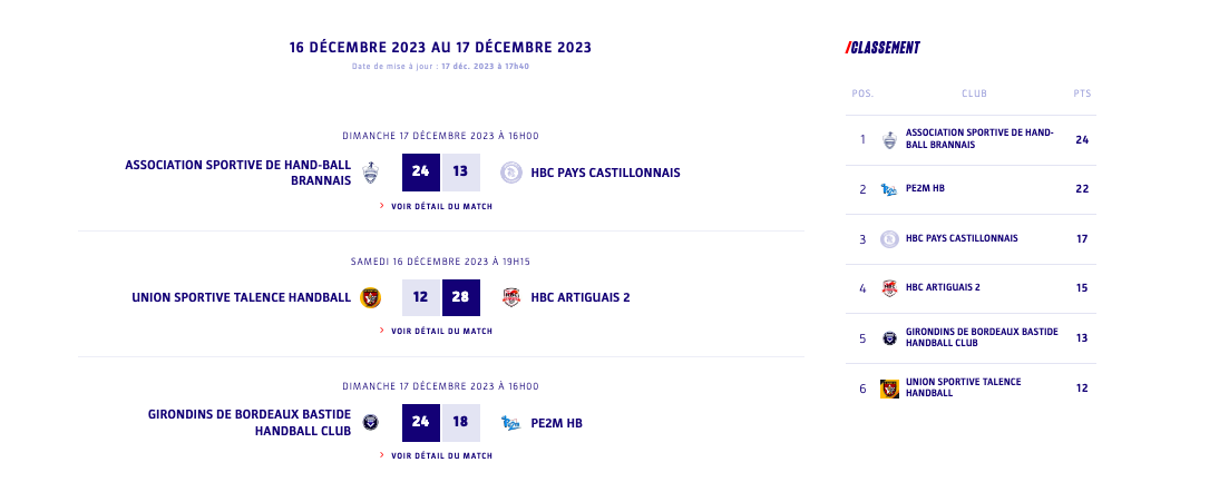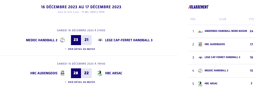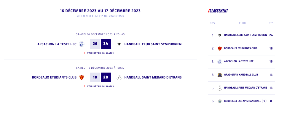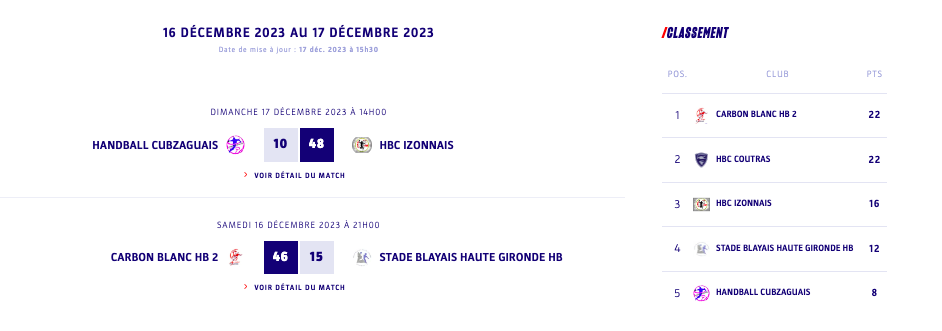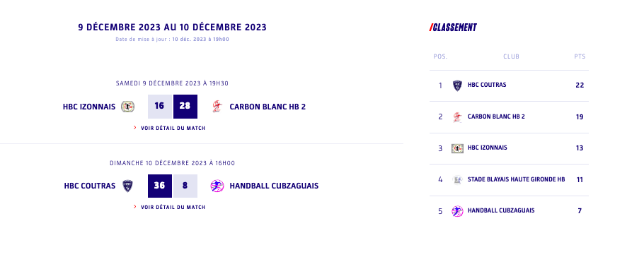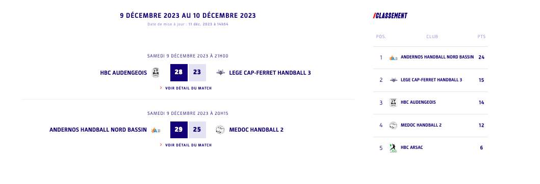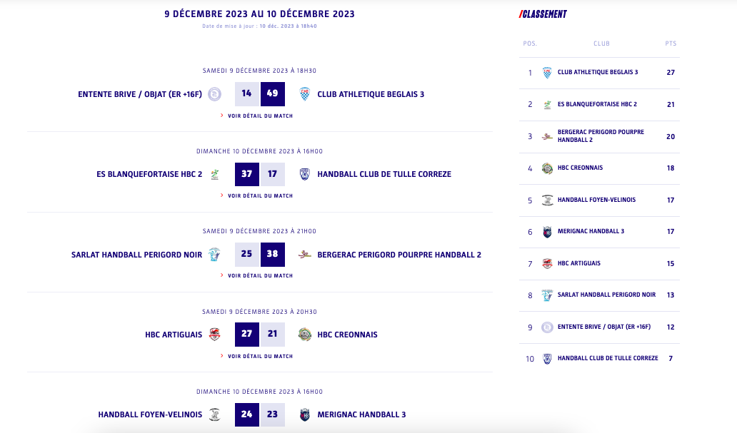 Excellence Régionale - Poule B - J9 - Les résultats et classement